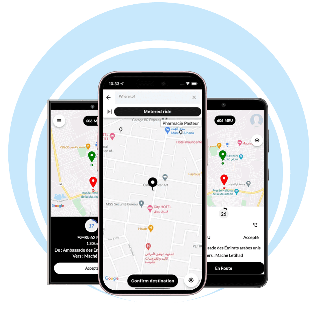 Application de TNC en Mauritanie offrant un confort de transport et une réservation simple des trajets.